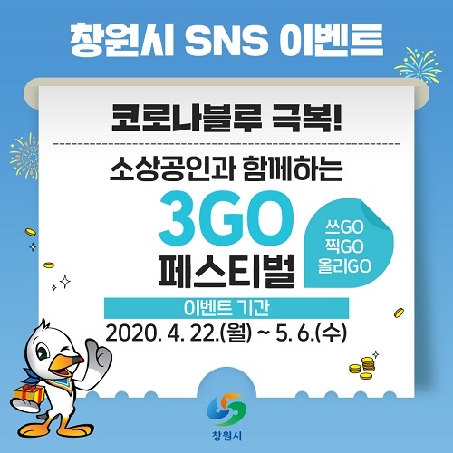 경남 창원시는 코로나19로 침체된 지역 경제에 활력을 불어넣고자 시 공식 블로그와 페이스북을 통해 '소상공인과 함께하는 3GO(쓰GO, 찍GO, 올리GO) 페스티벌'을 개최한다고 22일 밝혔다.