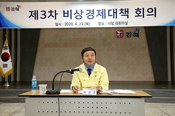 허성곤 김해시장은 이날 비상경제대책 회의를 주재하며 “코로나19로 지역경제 침체가 지속되는 상황에 대처하여 피해 소상공인 및 노동자 등에게 실질적인 지원이 신속히 이루어져야 지역경제가 무너지지 않고 회복될 수 있다”면서 “앞으로 4대 중점 전략으로 고용안정 및 민생경제 활력 부여를 위해 노력하겠다”고 밝혔다.