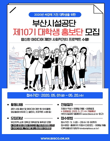 코로나19 감염증의 장기화로 지역사회 전반에 사회적 거리두기 실천이 이어지고 있는 가운데 부산시설공단이 비대면 홍보 활동이 가능한 제10기 대학생 홍보단을 모집한다고 24일 밝혔다.