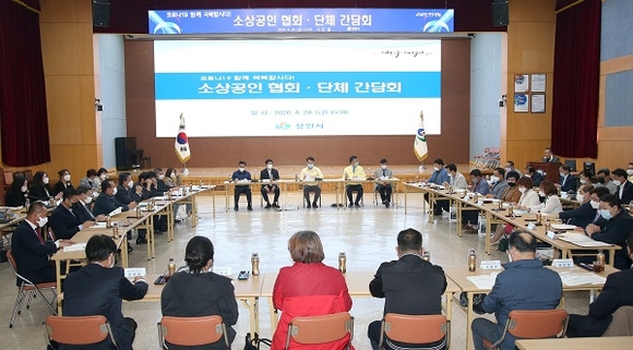경남 창원시는 24일 시청 시민홀에서 코로나19 극복을 위한 소상공인 지원대책의 시작을 알리기 위해 업종별 협회·단체 관계자들과 간담회를 가졌다.