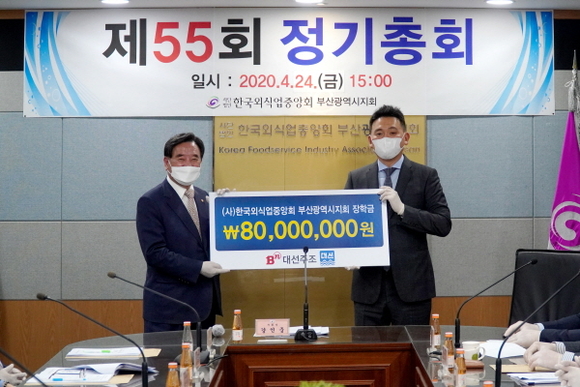 대선주조는 지난 24일 오후 3시 부산 동구에 위치한 ㈔한국외식업중앙회 부산광역시지회에서 열린 ‘제55회 정기총회 및 장학금 전달식’에서 부산광역시지회 소속 회원 자녀들에게 장학금을 전달했다.