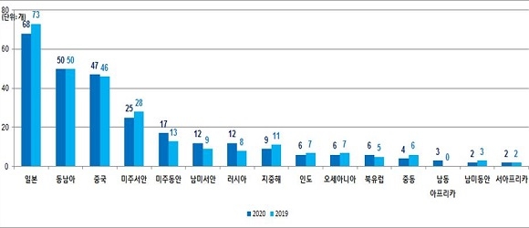 부산항만공사(BPA)는 ‘올해 국제 항만 기항 정기 국제 컨테이너 노선 수’ 조사 결과를 27일 발표하고 위와 같이 밝혔다.