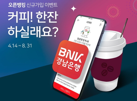 오픈뱅킹 서비스 신규가입 이벤트 기간 BNK경남은행모바일뱅킹앱(App)을 이용해 오픈뱅킹 서비스에 신규 가입하면 매월 100명 총 500명을 추첨, 모바일 커피 기프티콘을 발송한다.