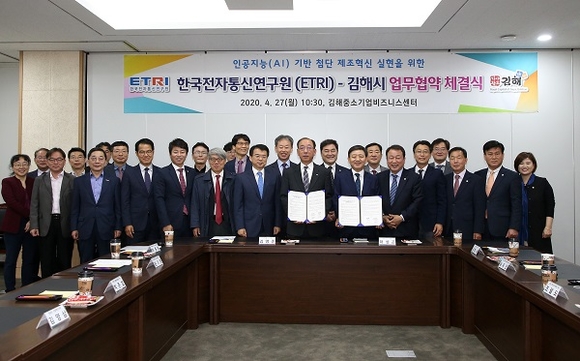 경남 김해시가 4차 산업혁명에 대응한 인공지능(AI) 기반 첨단 제조혁신 실현을 위해 국내 ICT 분야를 선도하는 정부출연 연구기관인 한국전자통신연구원(ETRI)과 손잡았다.
