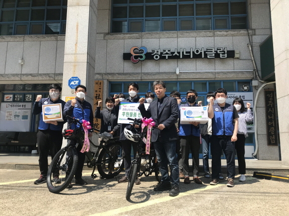 성장사업본부 봉사단은 28일 직원 급여에서 적립한 ‘러브펀드’를 활용, 경주노인복지시설인 참사랑 노인복지센터와 경주시 시니어클럽에 생필품과 전기자전거 등 시설 필요 물품과 개인위생을 위한 마스크와 손소독제를 전달했다.