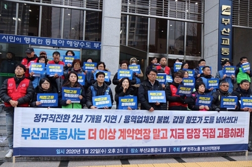 그러면서 이들 노동자는 “지난 2017년 5월 문 대통령의 약속 후 우리는 부산교통공사 직원이 될 날만을 기다렸다. 35년의 차별보다 더 길었던 지난 3년, 우리는 배제된 인생을 살고 있다”며 “지난해 7월 부산지하철노조가 파업을 벌여 정규직 일자리 540개가 만들어졌다. 청와대부터 부산시, 부산교통공사가 나날이 자화자찬을 하고 있지만 비정규직 청소노동자는 변한 게 없다”고 재차 비정규직에 대한 설움을 표했다.