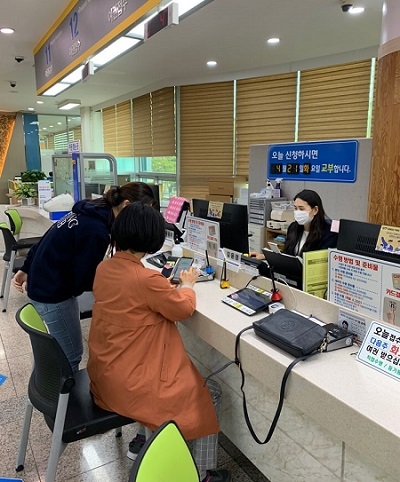 시청 행복민원실 내 여권 발급 창구에서 상품권 사용이 생소한 민원인들에게 제로페이 앱 설치부터 상품권 구입, 수수료 결제까지 과정을 안내하고 있다.