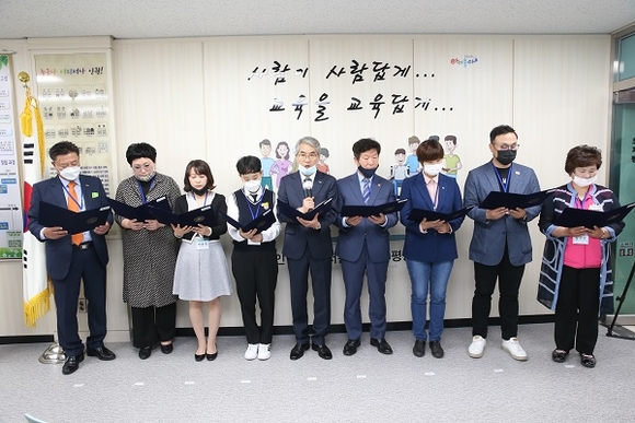 이 자리에는 박종훈 교육감, 경남도의회 표병호 교육위원장과 원성일 의원, 학생·학부모·교사·학교운영위원회, 교원단체, 공무원 노동조합, 학교비정규직 노동조합 등 교육공동체 대표가 참석했다.