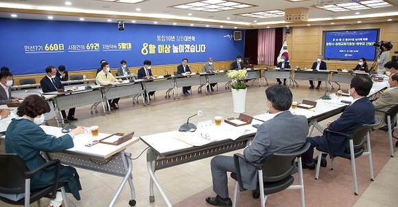 이날 회의는 '이태원발 코로나19 확산'의 우려 속에서 오는 20일부터 순차적으로 초·중·고 등교 개학이 예정된 가운데, 창원시와 창원교육지원청의 학교 안밖의 방역대책 등을 공유하고 협조체계를 구축하기 위해 마련됐다. 학교장과 학부모 대표들로부터 학교현장의 어려움을 듣는 시간도 가졌다.