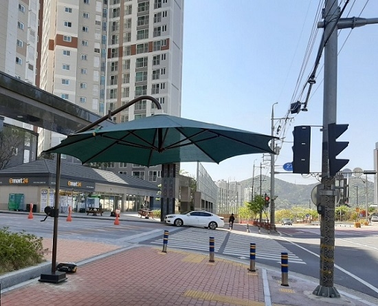경남 김해시가 올 여름 무더위에서 시민들을 보호하기 위해 그늘막 50개소, 쿨링포그는 5개소로 확대했다.