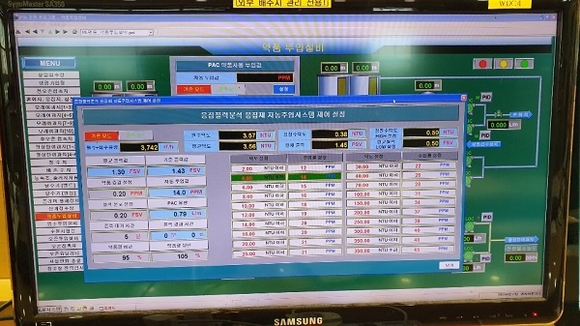 지난 1개월의 시운전 결과 정수약품의 수동 주입 시 18~20ppm 주입했던 것과 달리 12~15ppm을 주입해 전년동기 대비 16%를 절감했다. 이를 연간 단위로 환산하면 2500만원에 달하는 약품 123t을 절감할 수 있을 것으로 예상된다.