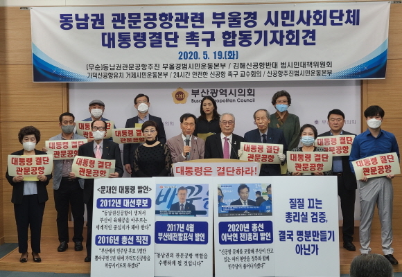 동남권 관문공항과 관련한 부산시, 울산시, 경남도의 시민단체들이 문재인 대통령에 신공항에 대한 결단을 하루빨리 내려줄 것을 촉구하고 나섰다.