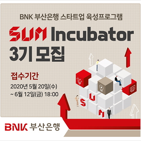 BNK부산은행이 지역 스타트업 육성 프로그램인 ‘썸 인큐베이터’의 3기에 참가할 업체 15개사 내외를 모집한다고 20일 공고했다.