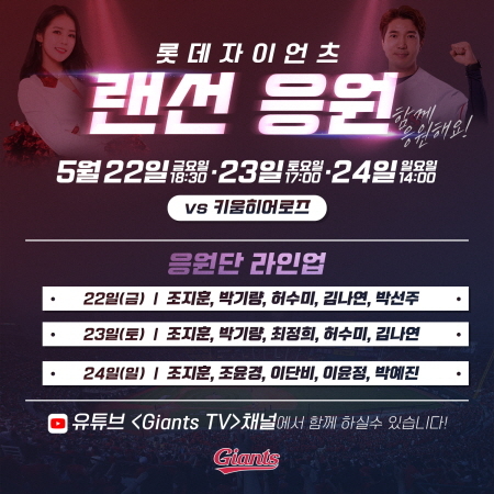롯데 자이언츠가 오는 22일부터 24일까지 진행되는 키움 히어로즈와의 홈 3연전에서 ‘온라인 응원단’을 운영한다고 21일 밝혔다.