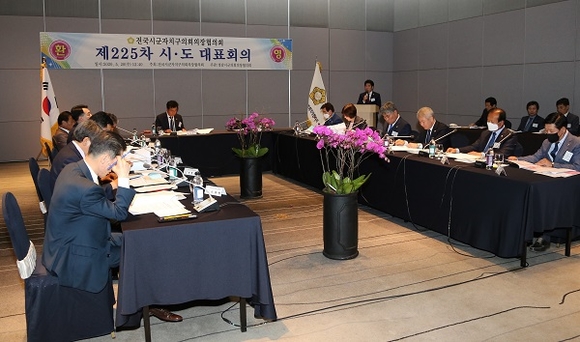 지난 20일 창원 그랜드머큐어앰배서더호텔 2층 그랜드볼룸에서 전국시군자치구의회의장협의회 제225차 시도대표회의가 개최됐다.