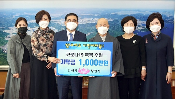 경남 창원시는 22일 의창구 소재 사찰 길상사가 '불기 2564년 부처님 오신 날'을 맞아 코로나19로 인해 어려움을 겪고 있는 시민들의 아픔을 나누기 위해 성금 1000만원을 기탁했다고 밝혔다.