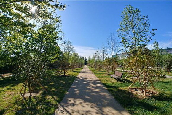 HUG는 미세먼지 저감을 위해 1만㎡ 규모의 부지에 목백합, 미국풍나무 등 수목 5000여 그루를 심었다. 또 이용객 편의를 위해 산책로를 정비하고 벤치를 새로 설치했다.