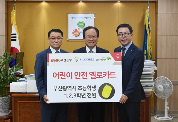 BNK부산은행은 부산시교육청이 교통사고에 취약한 초등학교 1~3학년 학생들의 안전한 등하굣길을 위해 가방에 붙이는 ‘안전 옐로카드’ 9만개를 만드는 데 제작 지원했다고 26일 밝혔다.