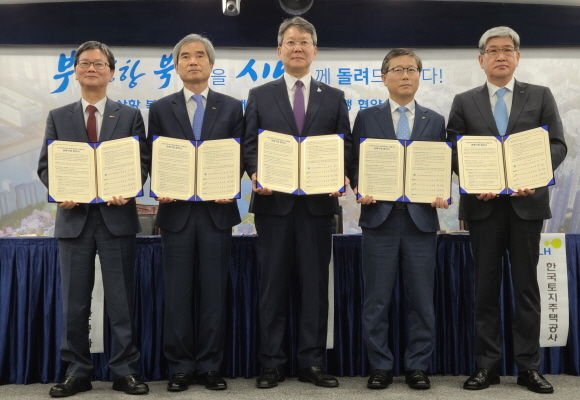 부산시가 27일 오전 9시 30분 시청 7층 영상회의실에서 ‘부산항 북항 2단계 항만재개발 사업’을 함께 추진할 공공기관 공동이행 협약식을 열었다.