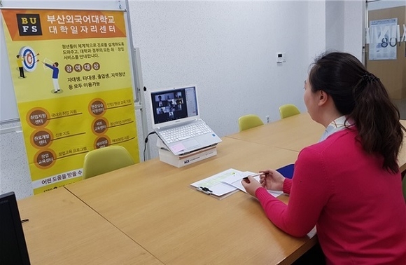 부산외국어대학교 대학일자리센터가 코로나19 사태로 축소된 채용시장의 어려움을 겪고 있는 학생들에게 경쟁력 강화를 위해 지난 4월부터 비대면 진로·취업지원 서비스 제공에 나섰다.