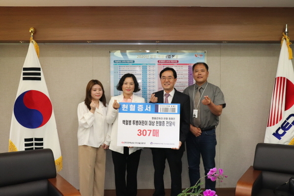 한국전력공사 부산울산본부(이하 부울본부)는 27일 본부 접견실에서 백혈병 투병 어린이 지원을 위한 307매의 헌혈증을 한국백혈병어린이재단 부산나음소아암센터에 전달했다.
