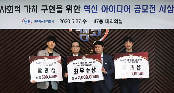 한국자산관리공사(캠코)가 지난 27일 오후 부산국제금융센터(BIFC) 본사 47층 대회의실에서 ‘사회적 가치 구현을 위한 혁신 아이디어 공모전’ 시상식을 열었다고 28일 밝혔다.