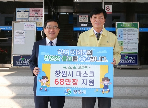 시는 지난 12일 초·중·고 등교수업에 대비해 창원교육지원청, 학교장 협의회장, 학부모 등과 함께 코로나19 대응을 위한 학교 안밖의 방역대책 등을 공유하고 협조체계를 구축해 학생들에게 가장 필요한 방역물품인 마스크를 지원하기로 결정했다.
