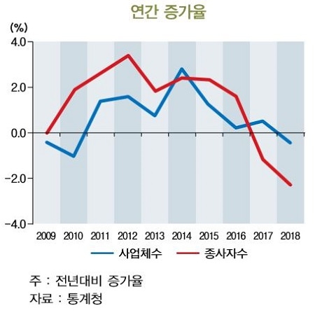 사업체 수와 종사자 수가 가장 크게 감소한 업종은 의복으로 확인됐으며 다음으로 섬유제품, 가죽 신발 등의 감소 폭이 컸다. 반면 식료품은 사업체 수와 종사자 수 모두 증가한 것으로 파악됐다.