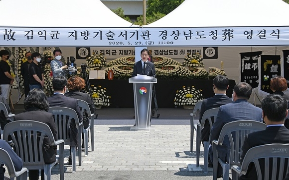 경남도는 공무 수행 중 유명을 달리한 故 김익균 서기관의 영결식을 29일 도청 동편광장에서 열었다.
