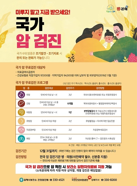 문의는 김해시보건소 건강검진팀, 인구보건복지협회 경남지회로 하면 된다.