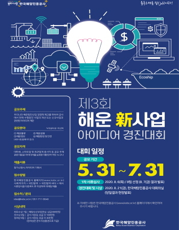 한국해양진흥공사가 내달 31일까지 전 국민을 대상으로 ‘제3회 해운신사업 아이디어 경진대회’를 진행한다고 1일 밝혔다.
