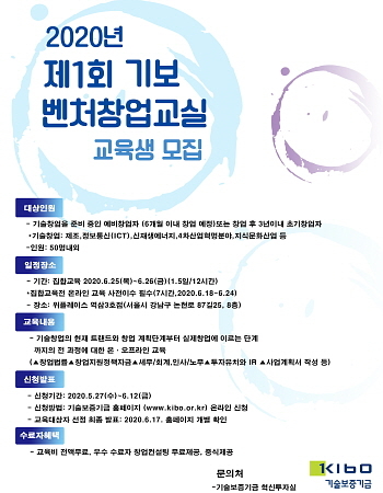 기술보증기금(기보)이 예비창업자와 초기창업자의 성공 창업 견인을 위해 ‘2020 제1회 벤처창업교실’을 열고 오는 12일까지 교육생을 모집한다고 2일 공고했다.