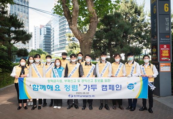 남부발전에 따르면 이 캠페인은 청탁금지법이 정하는 공직자 등의 비리나 부패 행위에 대한 시민의 공익신고, 부패신고를 독려해 접대, 청탁문화를 근절하고 청렴사회를 구현하고자 마련했다.