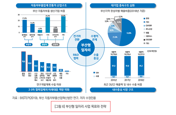 부산형 일자리 사업은 지역 내 전통적 내연기관인 자동차부품 중심에서 미래 전기차 중심의 산업으로 구조 전환을 이룬다는 점에서 그 의미가 있다. 또 수직적 원-하청 관계를 개선해 수평적, 협력적인 관계를 구축하기 위한 다양한 상생 규정을 마련했다는 것이 큰 특징이다.