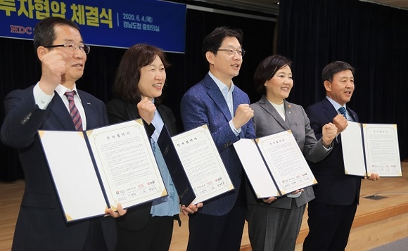 이날 협약식은 박영선 중소벤처기업부장관, 김경수 도지사, 허성곤 김해시장, 진은숙 NHN 총괄이사, 권순호 HDC현대산업개발 대표이사 등 기관과 기업 관계자 30여명이 참석한 가운데 NHN 투자계획 발표와 협약서 서명 순으로 진행됐다.