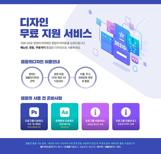 '창업 메뉴판 맞춤형 무료템플릿 지원사업'은 각 업종별 메뉴판, 명함, 쿠폰 등을 포토샵 및 일러스트 디자인 파일로 제작하여 무료로 시민에게 배포하는 사업이다.