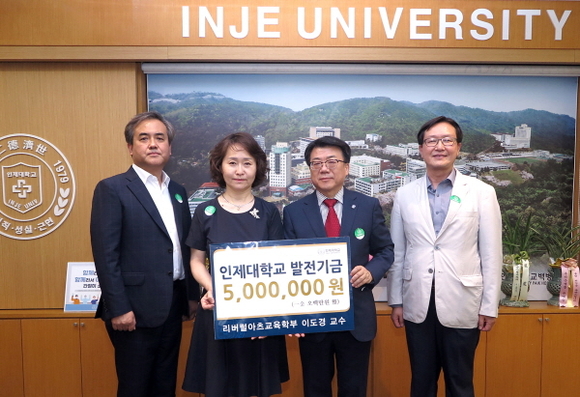 인제대학교 리버럴아츠교육학부 이도경 교수가 9일 대학발전기금 500만원을 기탁했다.