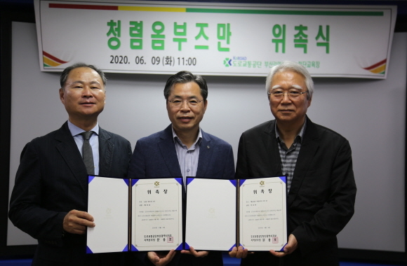 이날 도로교통공단 부산지부는 박춘한 ㈜아림 회장과 부경대 배상훈 환경해양대학 학장을 신임 부산지부 청렴 옴부즈만으로 위촉했다.