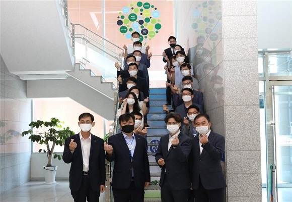 이 계단을 장식한 문구는 ‘청렴을 위한 한 걸음, 국민을 위한 백 걸음’ ‘청렴 계단, 건강은 UP 부패는 DOWN’ 등으로 전체 임직원 대상 표어 공모와 설문조사로 선정한 것이다.