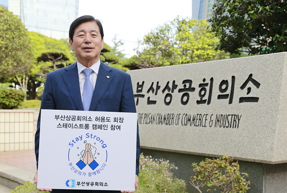부산상공회의소(부산상의)는 지난 10일 허용도 회장이 전 국민을 힘들게 하는 코로나19 감염증의 빠른 종식을 기원하는 마음을 담아 ‘스테이 스트롱’ 캠페인에 동참했다고 11일 밝혔다.