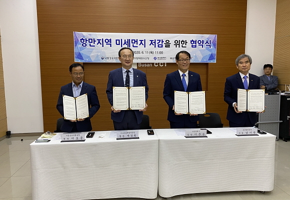 부산항만공사(BPA), 낙동강유역환경청(낙동강유역청), 부산지방해양수산청(부산해수청), 부산시가 항만 미세먼지 저감을 위해 11일 오전 11시 부산상공회의소(부산상의) 1층에서 협약을 체결했다고 밝혔다.