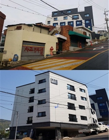 이번에 사하구 괴정동에 준공한 이 건물은 주거지 지원형 도시재생뉴딜사업을 추진하고 있는 괴정동 사업지에 인접한 노후 단독주택 소유자 2명이 주민합의체를 구성해 기존 주택을 철거하고 12호 다세대주택을 신축한 것이다.