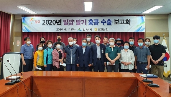 경남 밀양시는 11일 시 농업기술센터 소회의실에서 딸기 수출농가, 밀양농협 등 20여명이 참석한 가운데 홍콩 수출 딸기 간담회를 개최했다.