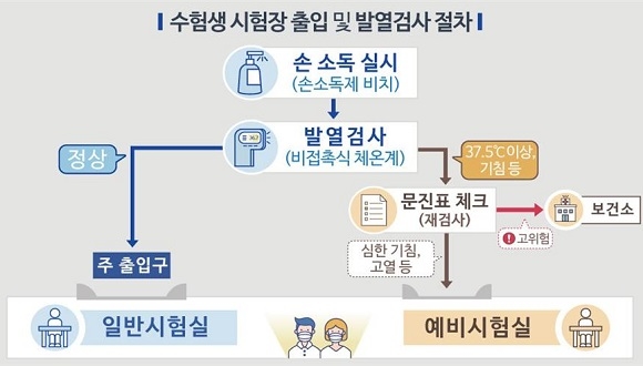먼저 감독관과 응시자는 모두 발열 여부를 확인해야 해 시험장에 미리 도착해야 한다. 또 시험장에서 계속 마스크를 착용해야 하며 모든 상황에서 ‘생활 속 거리두기’를 실천해야 한다.