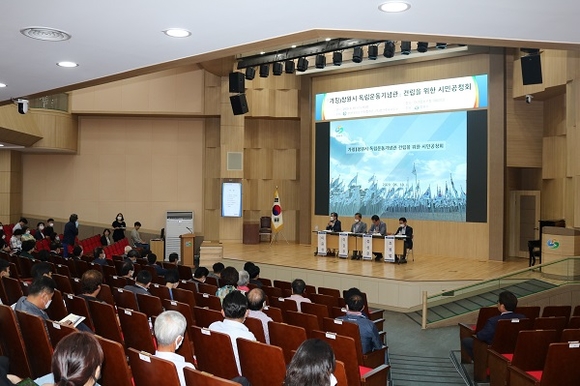 시는 지난 10일 마산합포구청 대회의실에서 시민을 비롯한 관계전문가 등 100여명이 참석한 가운데 '(가칭)창원시 독립운동기념관 건립'을 위한 시민공청회를 가졌다.