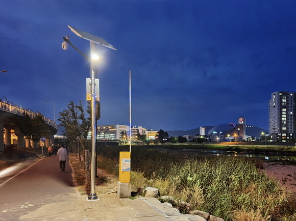 동서발전이 설치한 가로등은 LED 50W급 태양광 가로등으로 동천강을 찾는 지역주민의 안전보행과 편의증진을 위해 설치됐다.