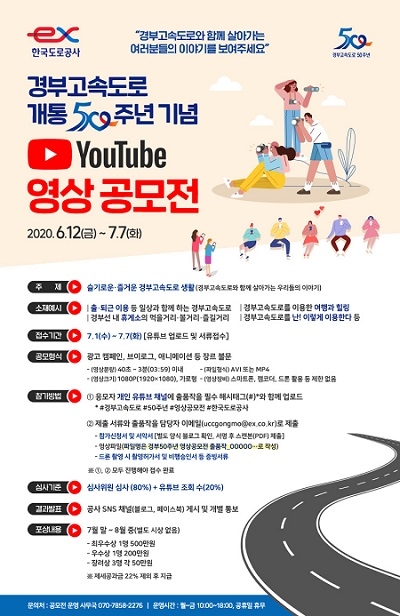 한국도로공사는 경부고속도로 개통 50주년을 기념해 동영상(UCC) 공모전을 연다고 16일 밝혔다.