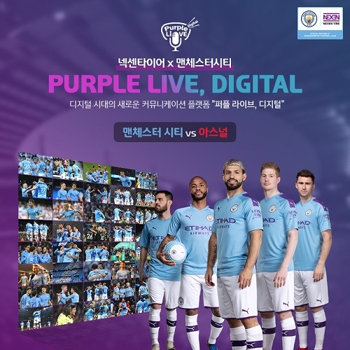 '퍼플 라이브, 디지털'의 첫 행사는 오는 18일 새벽 4시 15분(한국시간) 넥센타이어의 공식 파트너사인 영국 프리미어리그의 맨체스터 시티 FC와 아스널 FC과의 경기를 온라인상에서 응원 하는 형식으로 첫 선을 보인다.