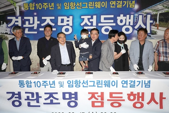 이날 허성무 창원시장을 비롯해 박삼동 도의원, 김종대·임해진 시의원, 인근 상인들과 주민 등 약 100여 명이 참석했다. 이들은 임항선 그린웨이의 랜드마크를 알리는 불빛을 밝혔다.