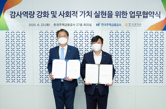 한국주택금융공사(주금공)와 한국감정원이 23일 ‘감사역량 강화, 사회적 가치 실현 위한 업무협약’을 체결했다고 밝혔다.